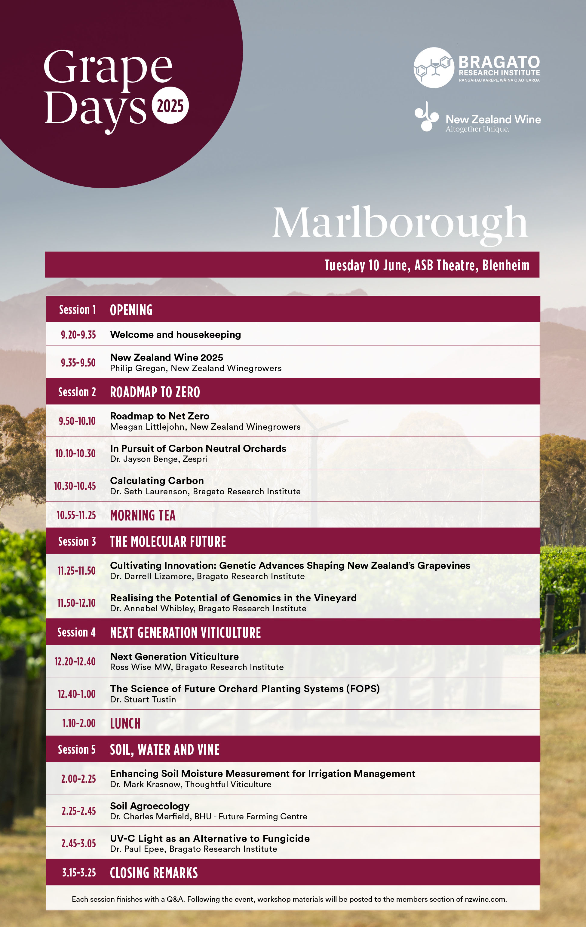 New Zealand's distinctive winegrowing regions each have unique soils and climatic conditions that are expressed in the wines produced.