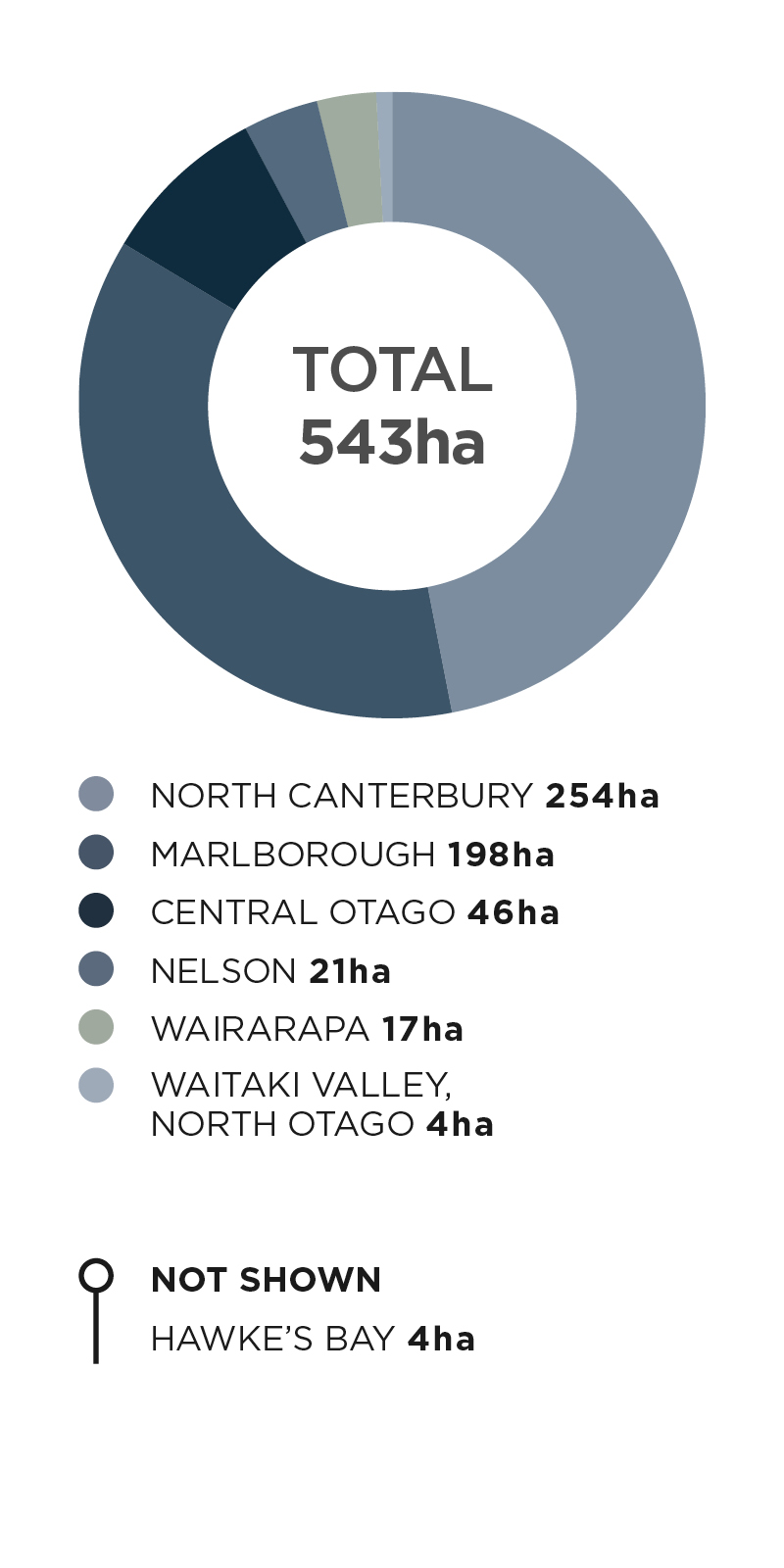 Approximately 95% of Riesling is grown in the South Island, where the climate is ideally suited with cool, long, dry, sunny autumns, large diurnal variance and low humidity.